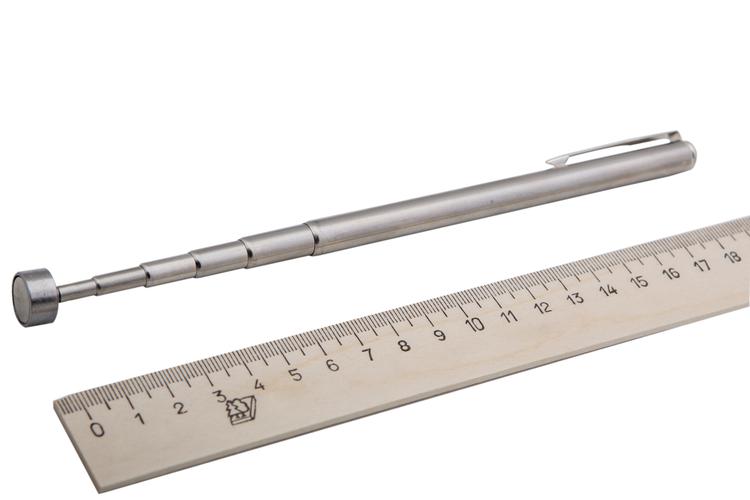 Магнитная телескопическая ручка выручайка станет очень креативным подарком для тех, кто работает с мелкими металлическими деталями или просто часто теряет железки под мебелью или в труднодоступных местах. Длина ручки увеличивается с 140 до 670 миллиметров. На конце ручки закреплён мощный неодимовый магнит.