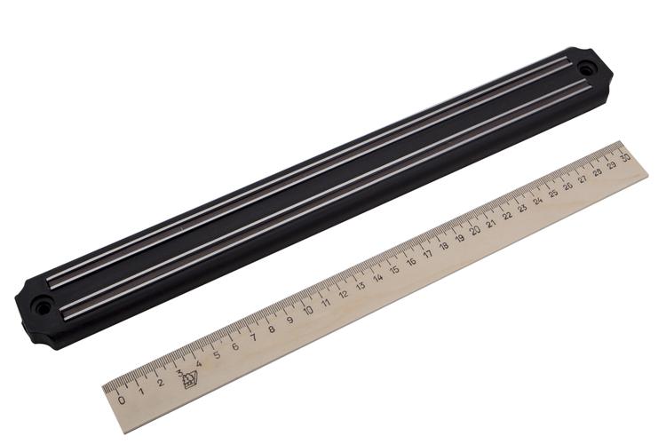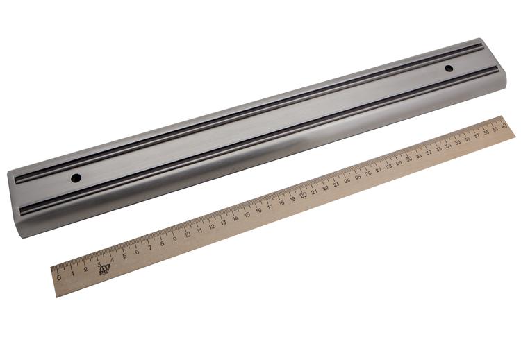 Настенный магнитный держатель для ножей и инструментов придётся к месту в любой квартире или мастерской. Благодаря мощным и качественным неодимовым магнитам в своей основе, изделие имеет почти неограниченный срок службы. Держатель позволит сэкономить место в ящиках заняв нерабочую площадь стен и сделает кухню или мастерскую значительно удобнее. Крепежные шурупы и дюбеля в комплекте.