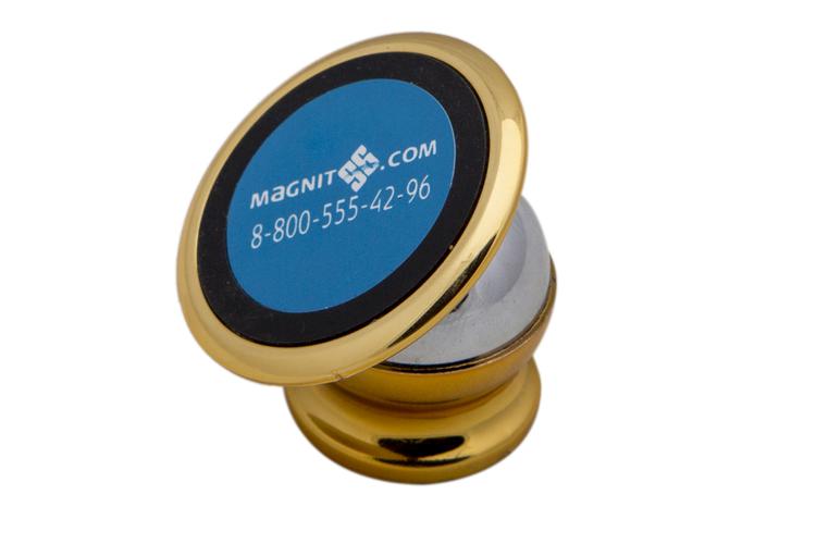 Магнитный автомобильный держатель для телефона  - востребованный подарок для любого автомобилиста. Выполнен из качественной стали с использованием неодимового магнита. Автомобильный держатель имеет компактные размеры и стильный фирменный вид. Удобное крепление позволяет расположить его в любом месте на автомобильной панели, не занимая места и пространства обзора на стекле. Легко крепится – шаровый элемент крепится к панели, а телефон примагничивается к держателю через металлическую экранирующую основу. Поворотный элемент способен захватить 360 градусов.